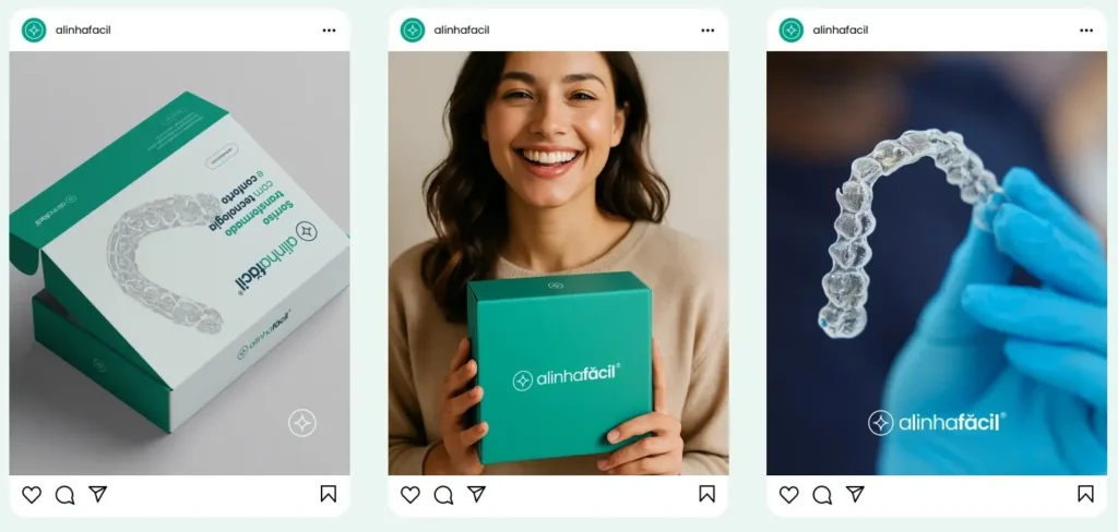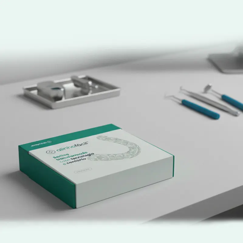 Receba os alinhadores invisíveis diretamente no seu consultório, em embalagens funcionais e sofisticadas, prontos para iniciar a transformação do sorriso do seu paciente.